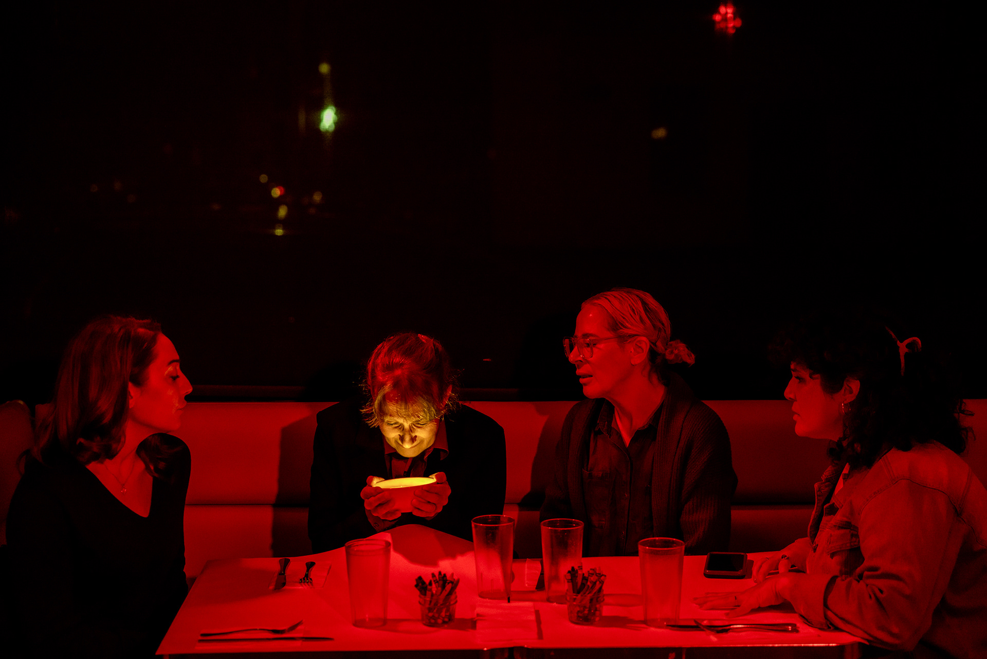 Four women meet on the first Monday of each month in the same diner, at the same time (when they’re on time) where they complain about the slow service, their dietary restrictions, the latest Real Housewives episodes, the smell of a tuna fish sandwich, and their college sons’ sexual assault allegations, while the server would rather be anywhere else. Loosely based on this NY Times article from 2017.